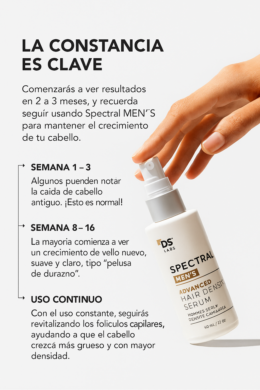 Constancia = resultados. Mantén el uso diario para potenciar la densidad y vitalidad del cabello.